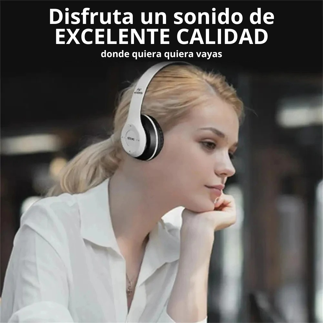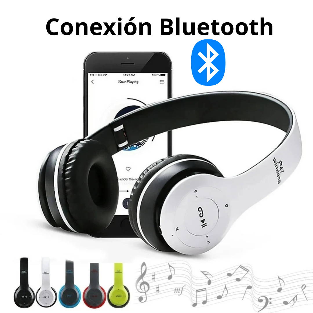 Los audífonos inalámbricos P47 ofrecen conexión Bluetooth estable para escuchar música o atender llamadas en cualquier lugar.